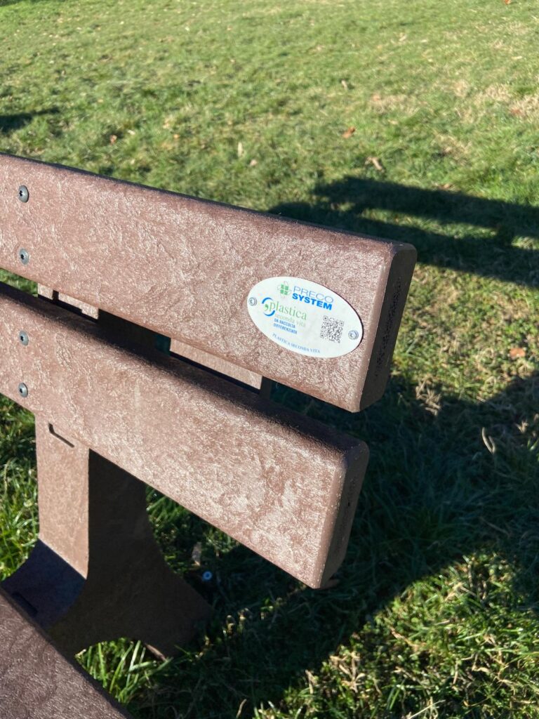 Le panchine utilizzate sono prodotte da Preco System, punto di riferimento nel panorama nazionale dell’arredo urbano in materiale riciclato. Attraverso il recupero di plastica post-consumo, l’azienda dimostra come l’innovazione industriale possa coniugare qualità, resistenza e sostenibilità, trasformando un rifiuto in una risorsa durevole e utile alla collettività.