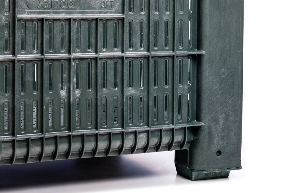 Contenitore per lo stoccaggio agricolo e industriale. Atossici per alimenti, resistenti agli agenti chimici, atmosferici ed ai raggi UV e totalmente riciclabili. Ha 4 piedini. Prodotto interamente in Italia. Colore: verde(altri colori su richiesta)